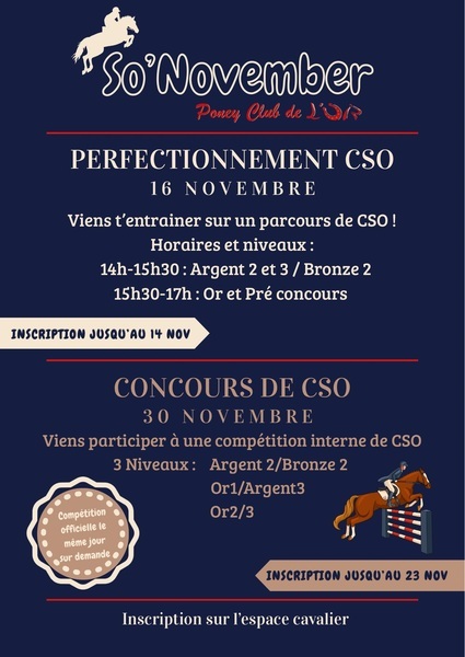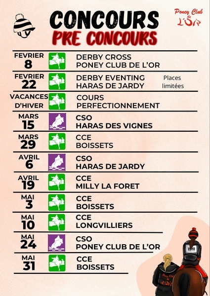 Objectif :              Participation à des concours officiels (extérieurs) CSO/ CCE/DERBY